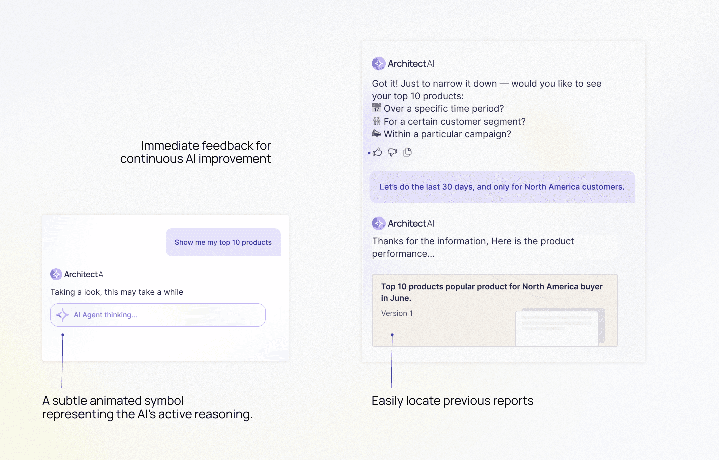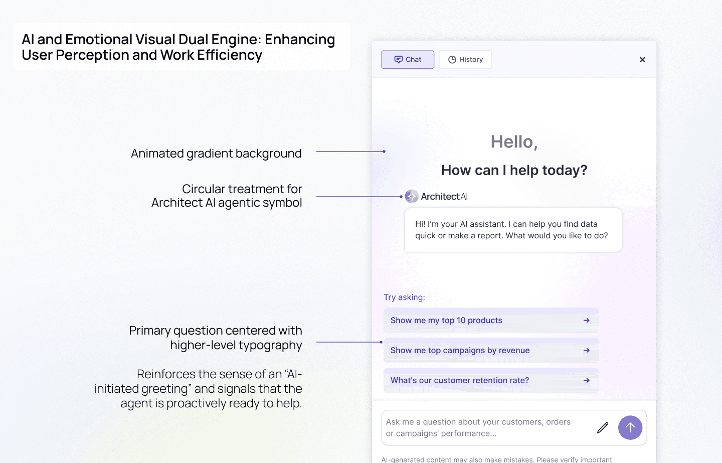 The AI module uses soft, tech-inspired blue-purple tones to: